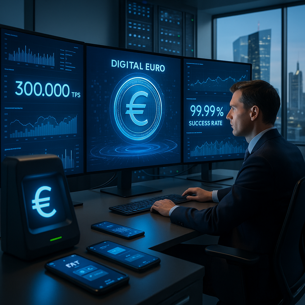 The European Central Bank’s digital euro testing platform has surpassed performance targets, processing over 300,000 simulated transactions per second with a reported 99.99% success rate. The ECB published these results in a comprehensive technical report released on 27 September 2025.